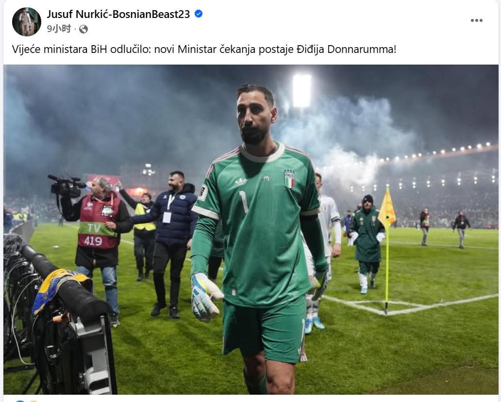 北京时间4月1日,意大利在世界杯欧洲区预选赛决赛的点球大战中负于波黑,无缘美加墨世界杯决赛圈比赛。赛后画面显示,意大利门将多纳鲁马和波黑球员疑似发生了冲突。不知是否出于这一原因,波黑篮球名将、犹他爵士队球员努尔基奇在个人社媒发表了多条针对意大利队和多纳鲁马本人的嘲讽。